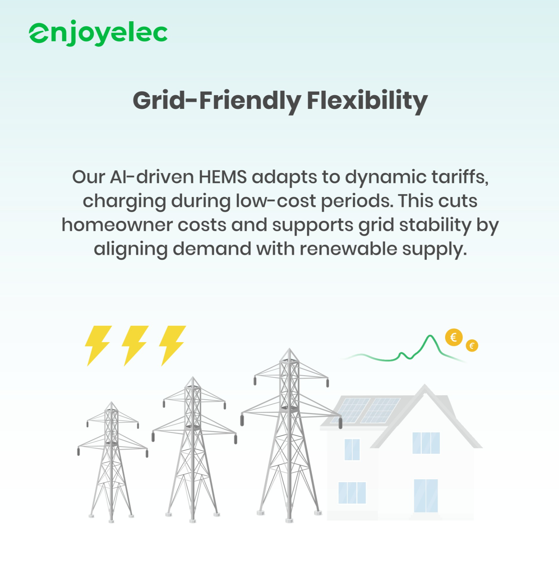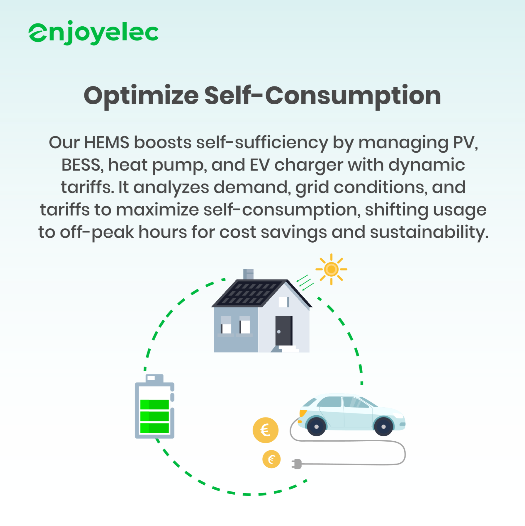 With subsidies phasing out, self-sufficiency is key. enjoyelec’s HEMS intelligently manages energy flows by: