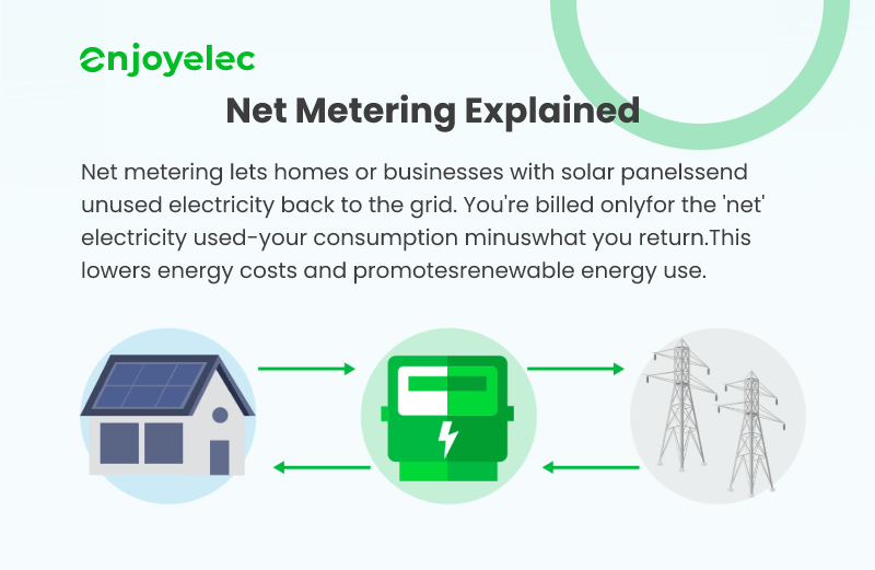 Net metering allows you to send unused solar energy back to the grid, reducing your electricity costs by only paying for the "net" energy used. Enjoyelec helps you optimize your energy savings and promote sustainability. 🌞⚡
