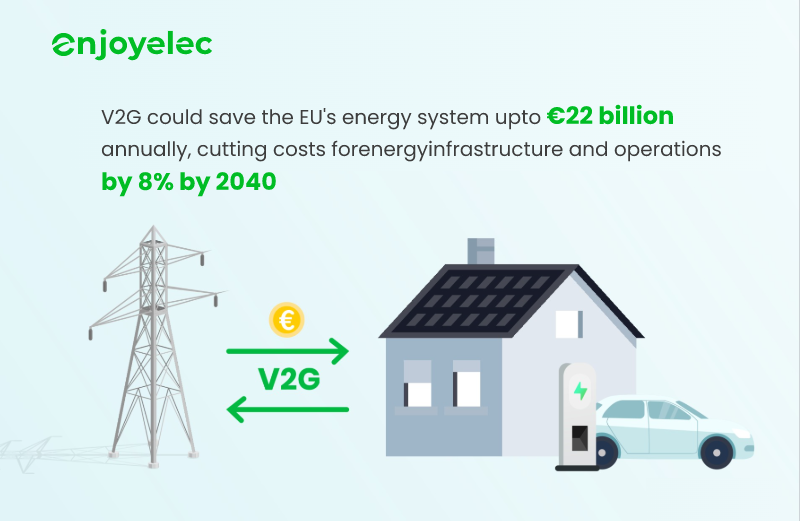 Vehicle-to-Grid (V2G) technology transforms EVs into "batteries on wheels," storing and supplying energy to the grid. With enjoyelec’s HEMS, V2G optimizes energy flow, reduces waste, and cuts costs, driving a smarter, sustainable energy future.