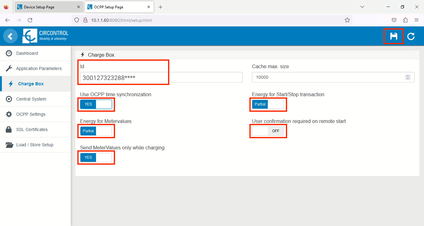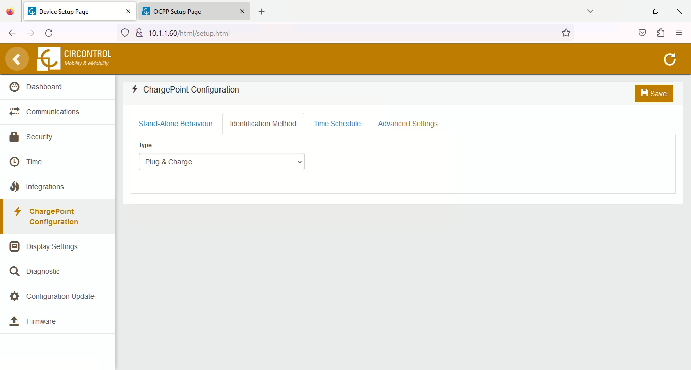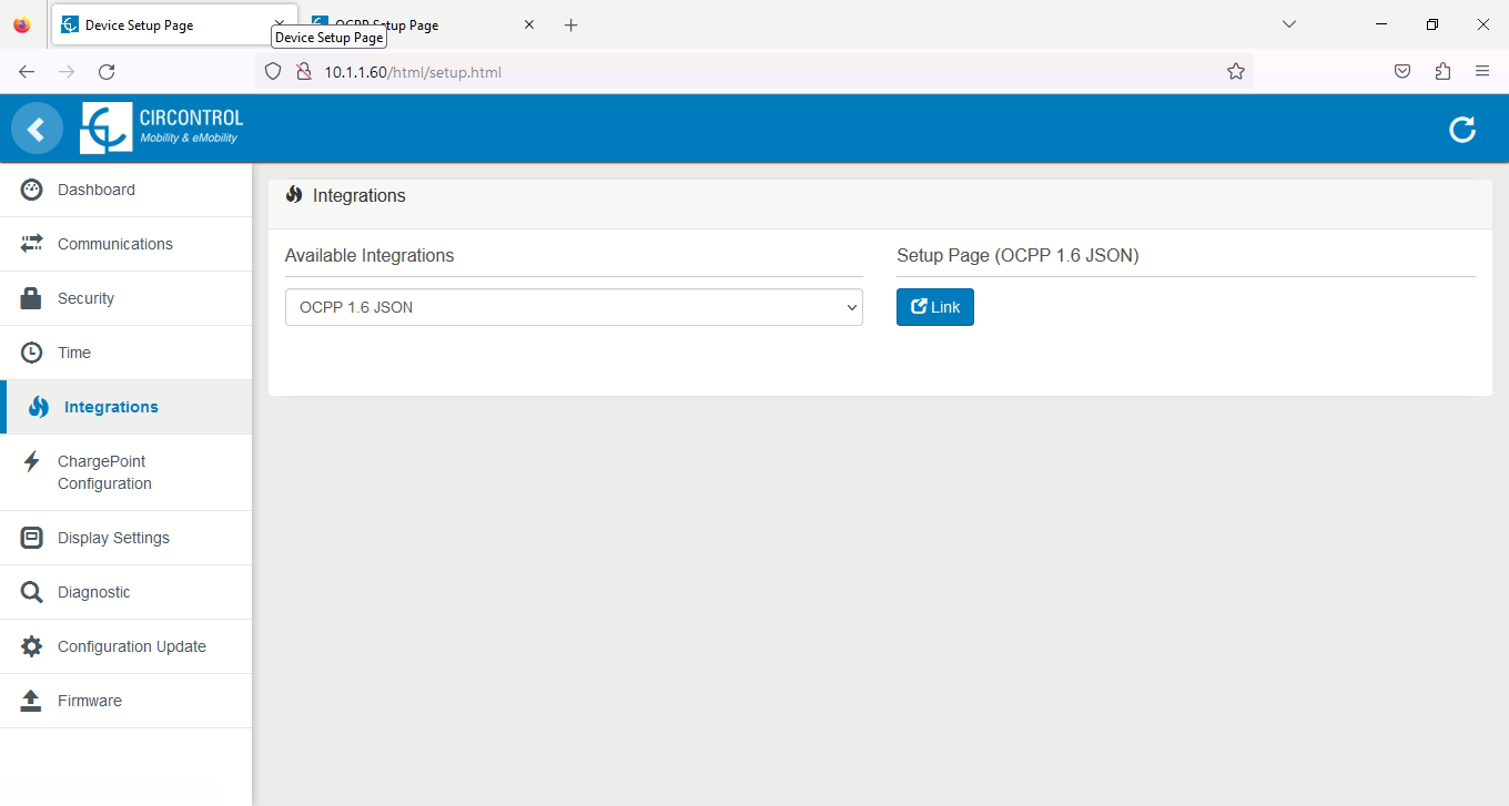 • In the Circontrol Setup Webpage, navigate to “ChargePoint Configuration” menu