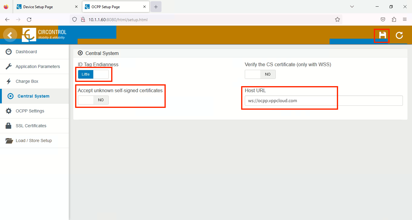 • Set HOST URL: ws://ocpp.vppcloud.com