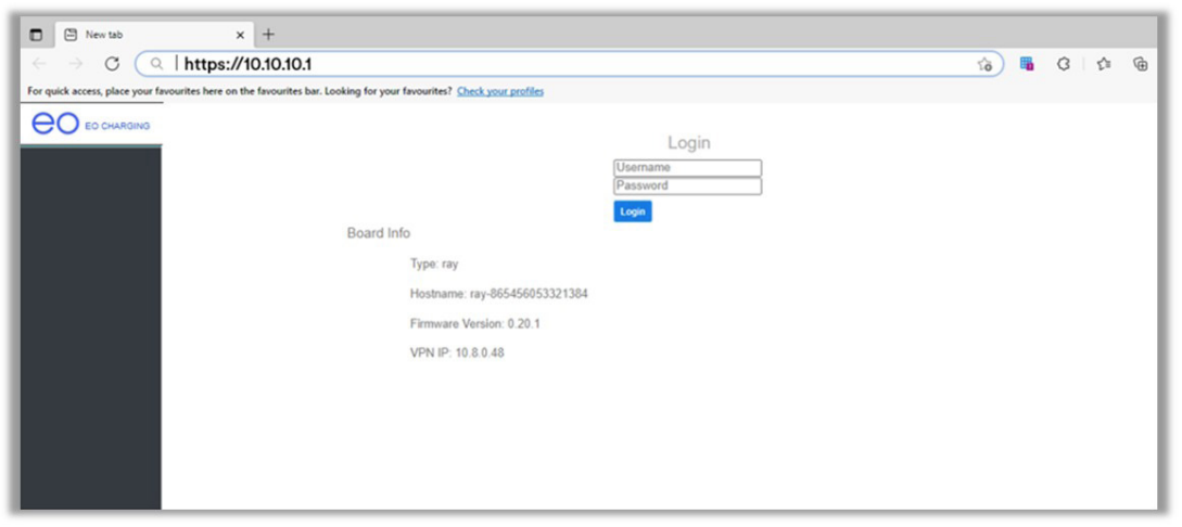 - In your web browser enter the URL http://10.10.10.1/