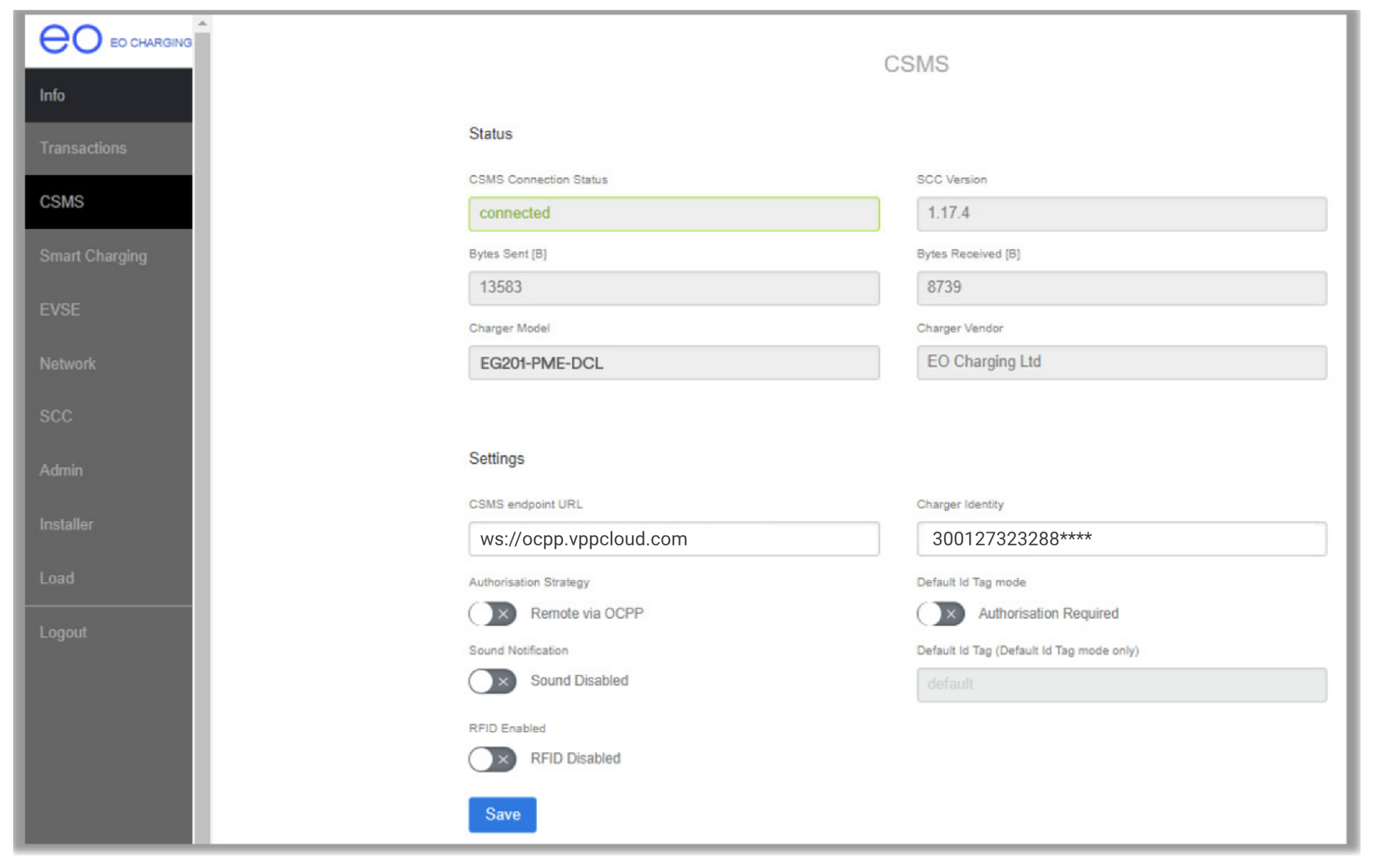 - CSMS Server Address to: ws://ocpp.vppcloud.com
