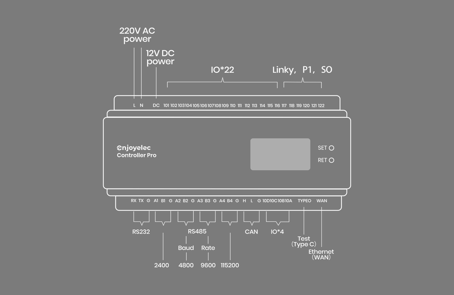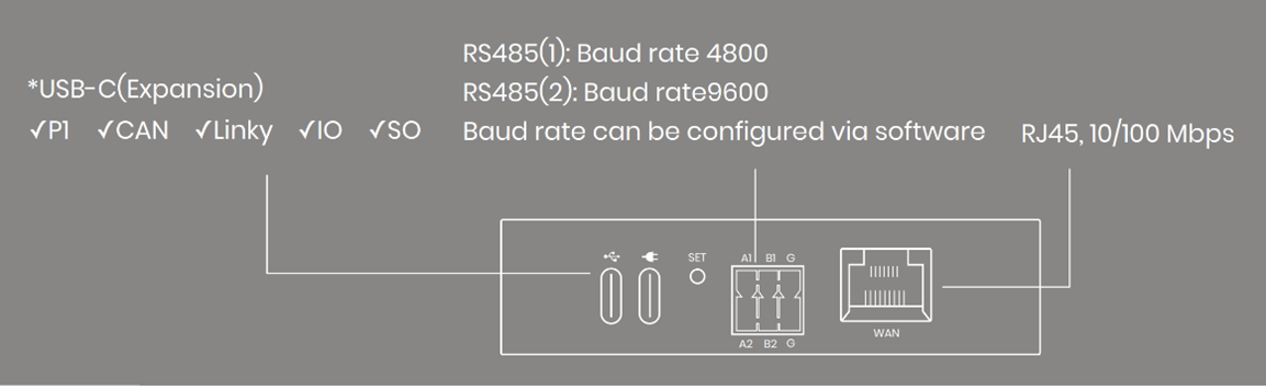 - Below is an illustrative diagram of the HEMS Controller’s ports: