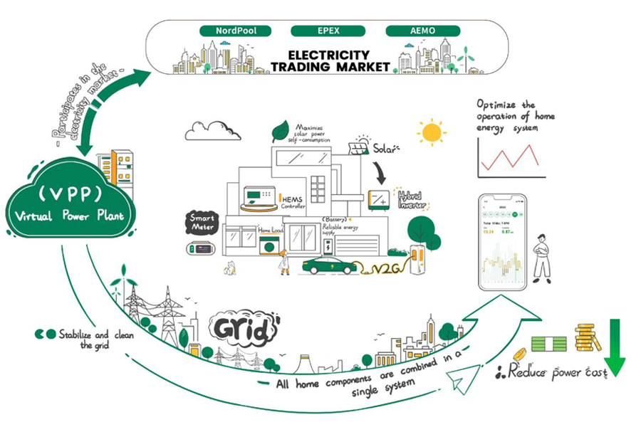 The HEMS Controller serves as an energy management hub, seamlessly linking all your home components, such as Solar, Battery Storage, EV Charger, Electric Vehice, HVAC and Smart Home Devices. It collects real-time home energy data to intelligently optimize energy usage, considering factors like market prices and solar energy availability.