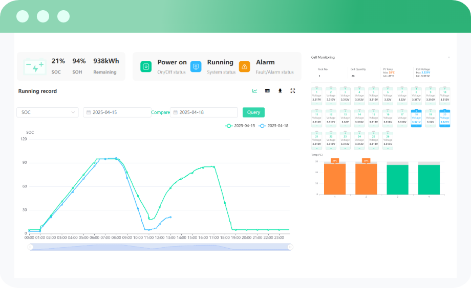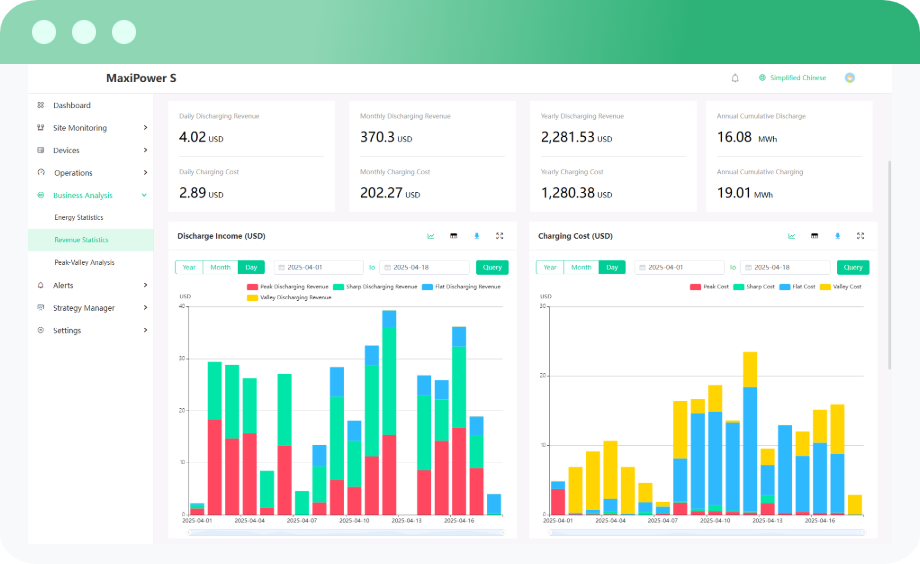 Aggregate operational data from PV, BESS, and EV chargers, displaying insights through a visualized dashboard.