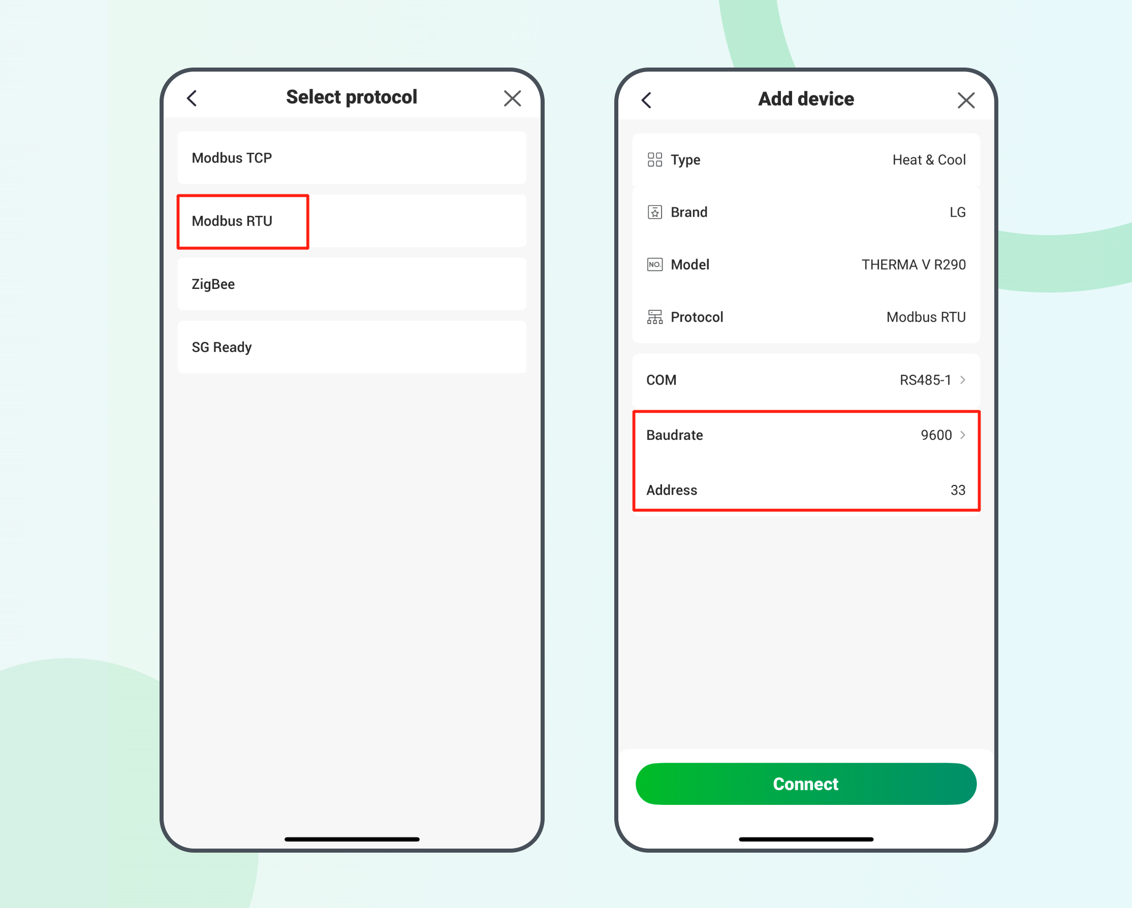 3. Establish Connection: Once saved, the Controller will pair with the heatpump. You can then begin data collection and active energy management.