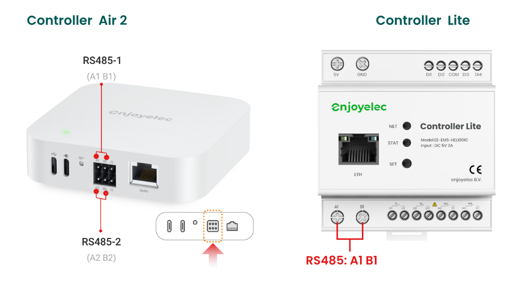 • If a different baud rate is required, please refer to the HEMS Controller manual or use the enjoyelec app to adjust the controller’s port settings.