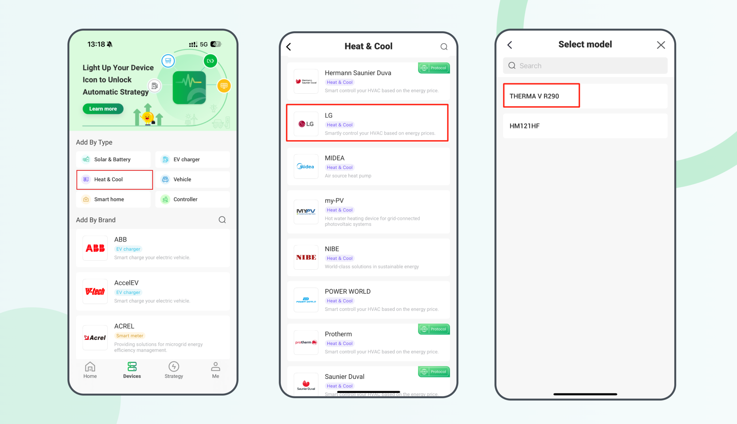 Once configured, the LG THERMA V R290 Heat Pump will be fully integrated into the HEMS, enabling you to monitor real-time data and control the device remotely via the app.