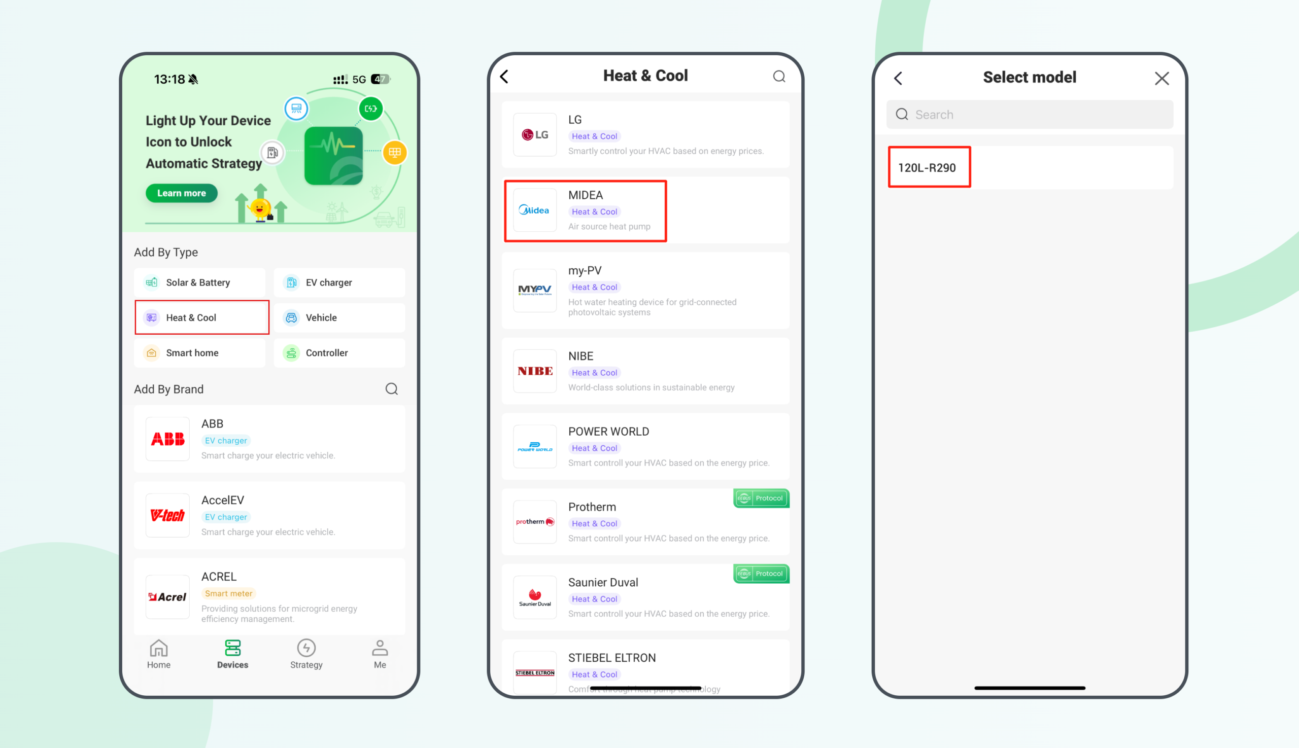Once configured, the Midea R290 Heat Pump will be fully integrated into the HEMS, enabling you to monitor real-time data and control the device remotely via the app.