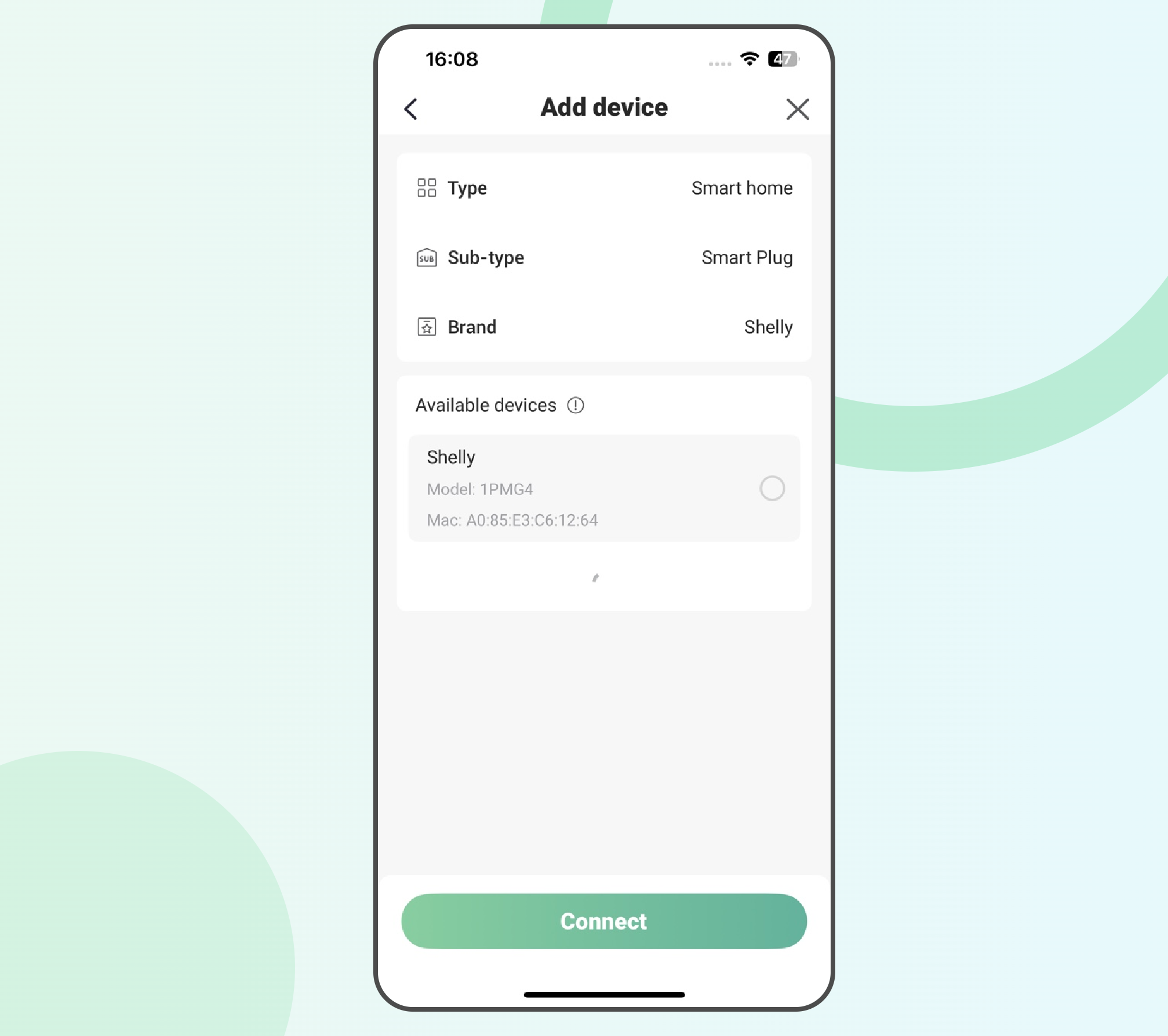 • According to Shelly’s user manual, connect the relay to the network and make sure it is within the same local area network as the controller.