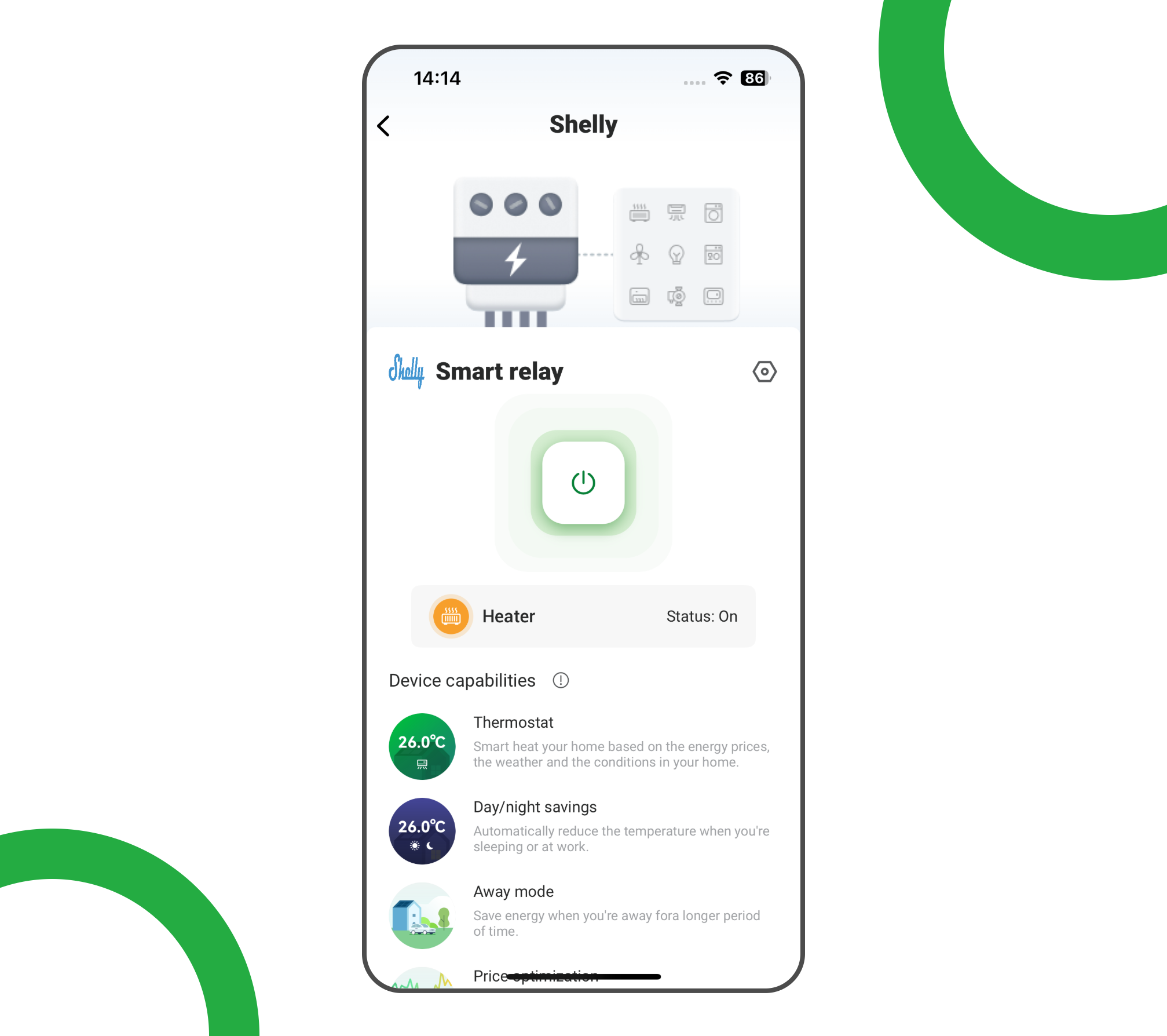 - After successfully establishing the shelly connection, the device model of the Smart Relay will be displayed on the app.
