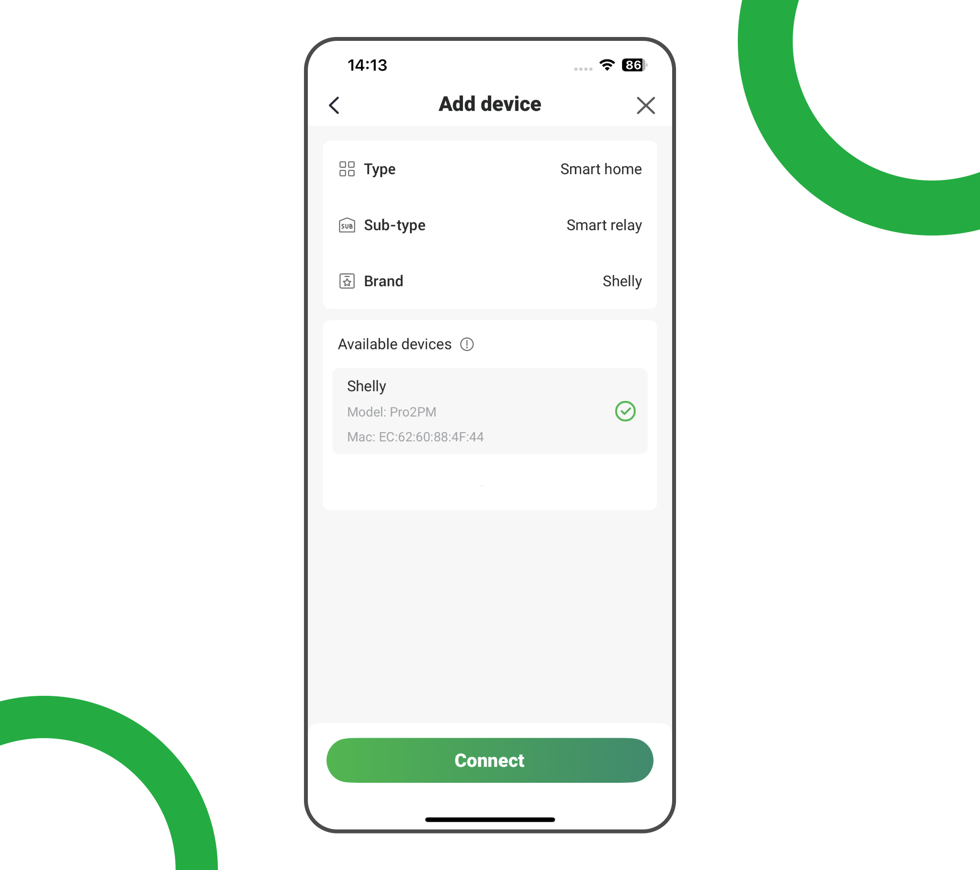 - According to Shelly’s user manual, connect the socket to the network and make sure it is within the same local area network as the controller.