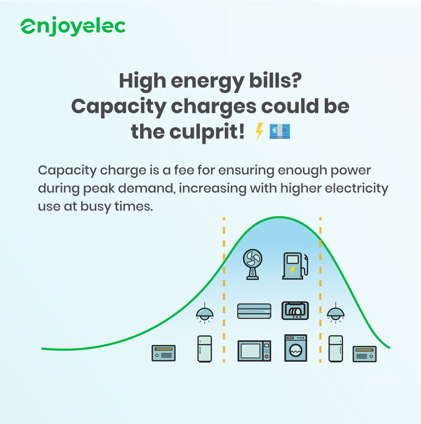 Ever feel like your energy bill has a mind of its own? 😕 One major factor could be capacity charges— extra fees added during peak demand times. When your home’s energy usage spikes, these charges can soar! But with enjoyelec’s Home Energy Management System (HEMS), you can take control and make energy management your new superpower. 🦸♂️⚡