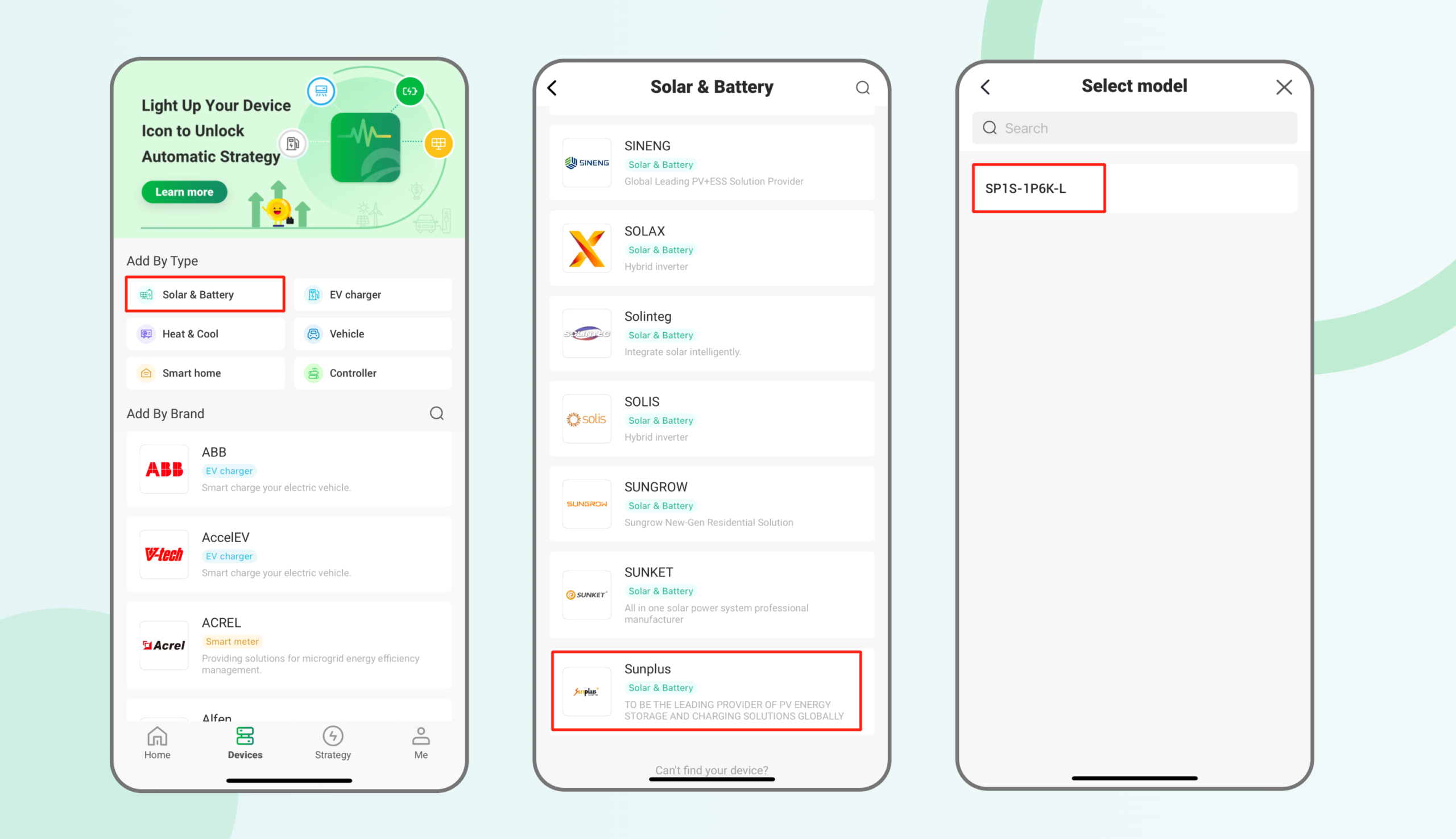 Once configured, the SP1S-1P6K-L inverter will be fully integrated into the HEMS, enabling you to monitor real-time data and control the device remotely via the app.