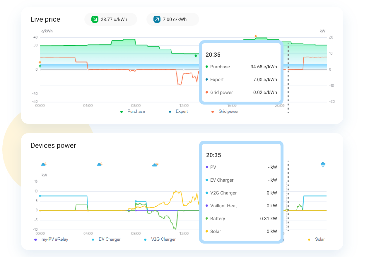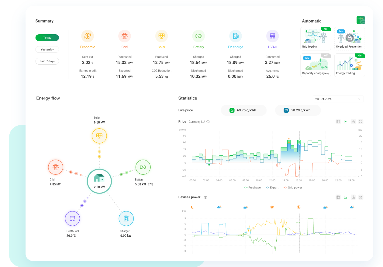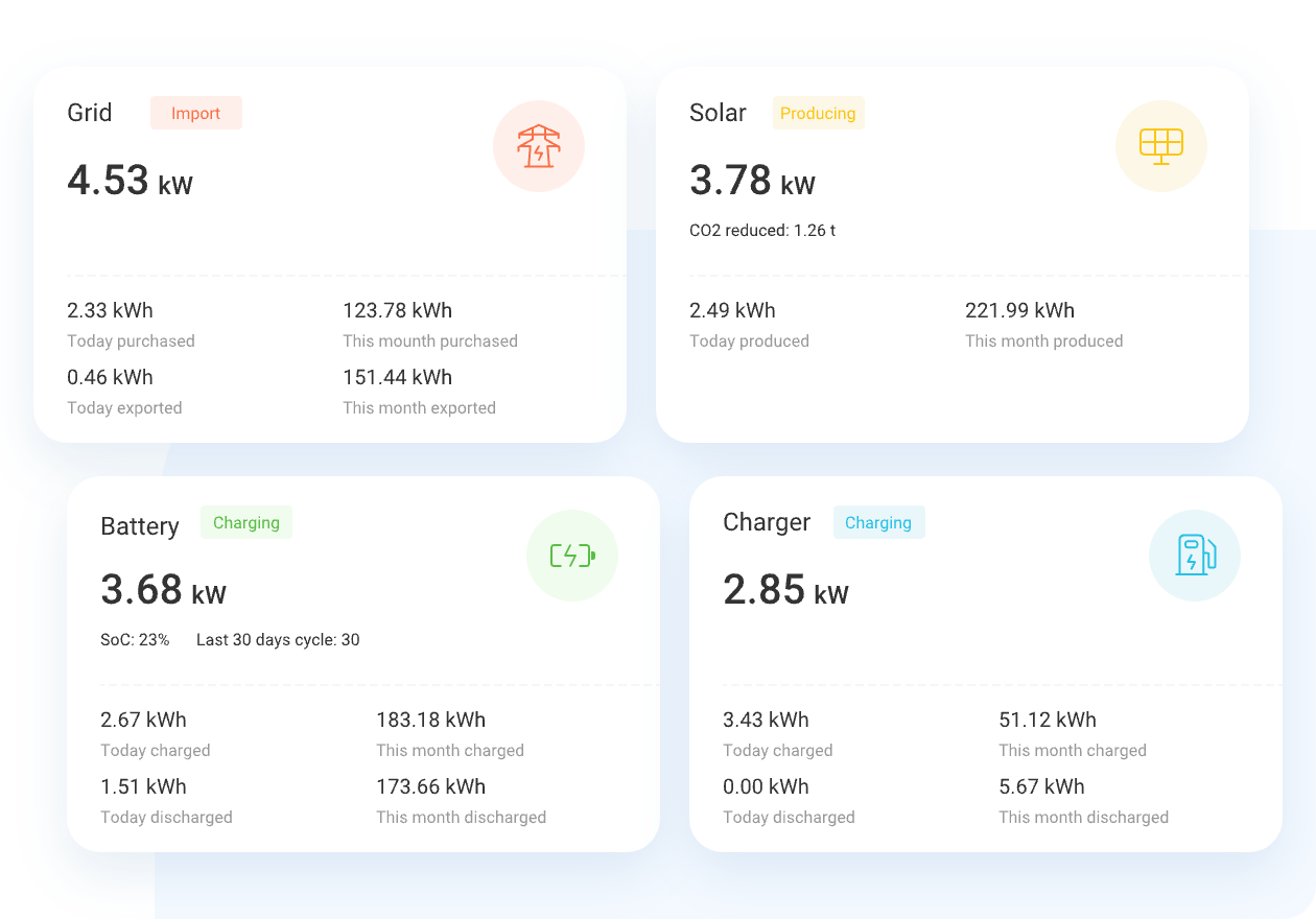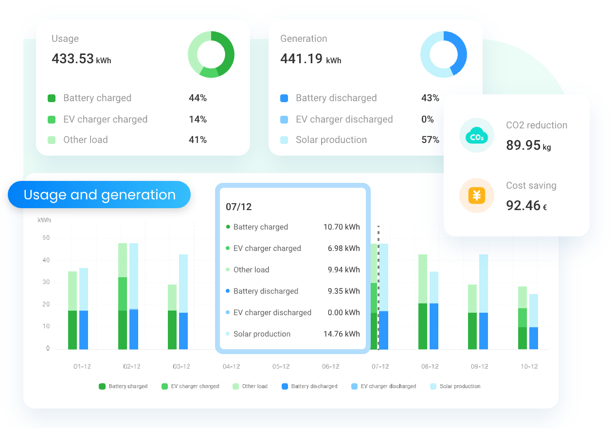 Track your energy usage, generation, and self-consumption with detailed insights and breakdowns, all in one place.